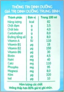 7 | ![]() Đối với sản phẩm Ít Đường có chú thích “ÍT ĐƯỜNG(*)” |